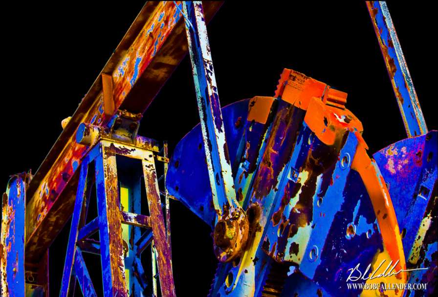 Oilfield art created by Bob Callender, a local Midland artist, who takes the photos, color edits, and puts the print on custom stretched canvas.