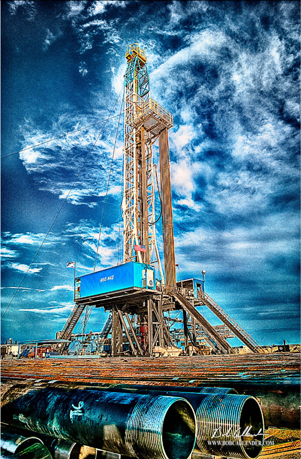 Oilfield art created by Bob Callender, a local Midland artist, who takes the photos, color edits, and puts the print on custom stretched canvas.