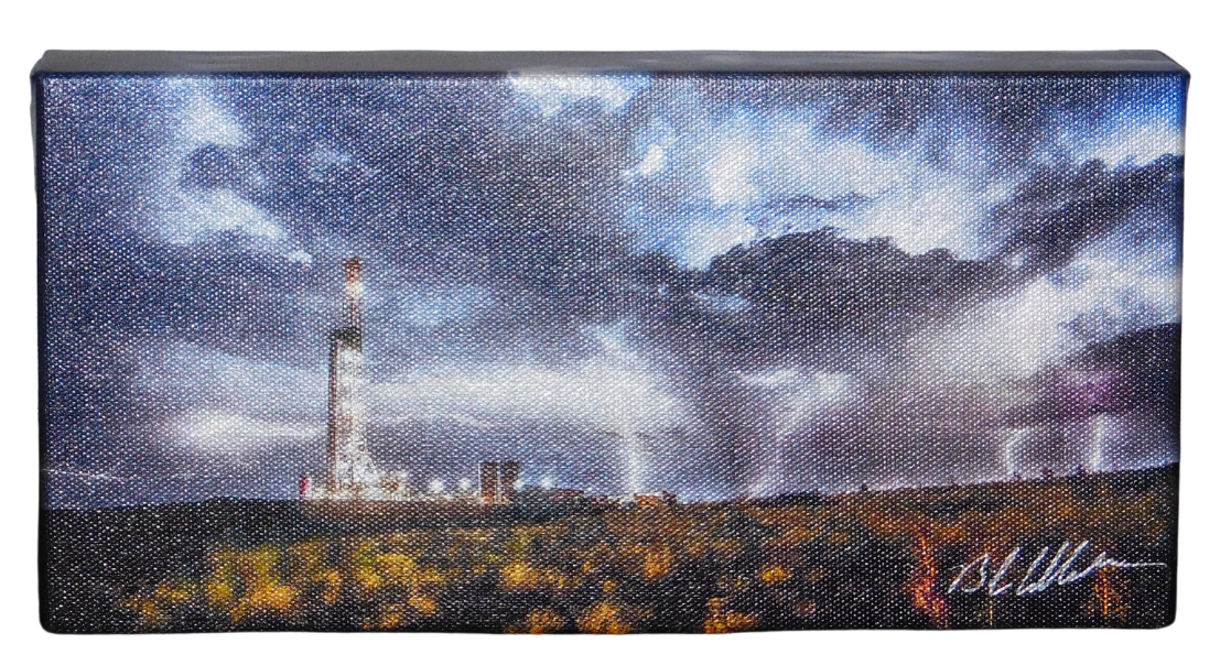 Oilfield art created by Bob Callender, a local Midland artist, who takes the photos, color edits, and puts the print on custom stretched canvas.