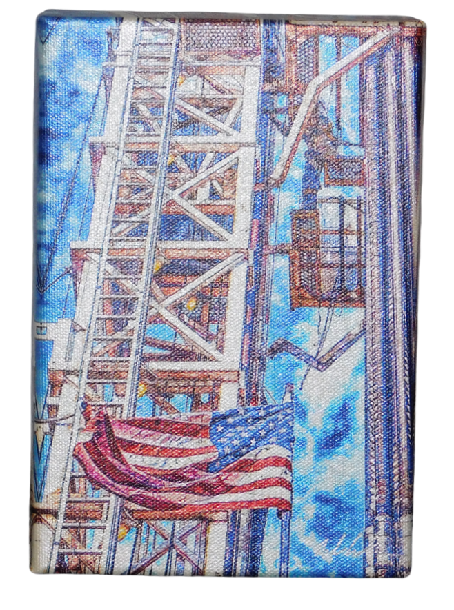 Oilfield art created by Bob Callender, a local Midland artist, who takes the photos, color edits, and puts the print on custom stretched canvas.