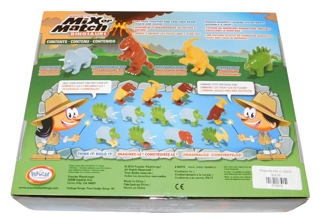Create a world of fun with these Magnetic Mix or Match sets! Take apart and put together different or same parts of magnetic dinosaurs, and see how many combinations you can do!