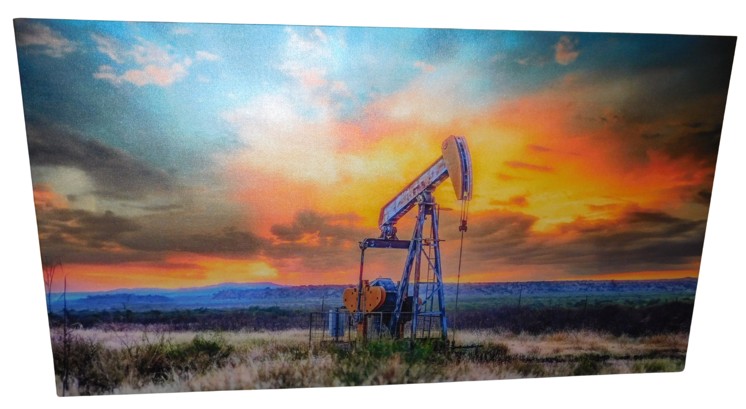 Oilfield art created by Bob Callender, a local Midland artist, who takes the photos, color edits, and puts the print on custom stretched canvas.