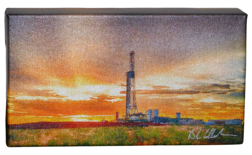 Oilfield art created by Bob Callender, a local Midland artist, who takes the photos, color edits, and puts the print on custom stretched canvas.